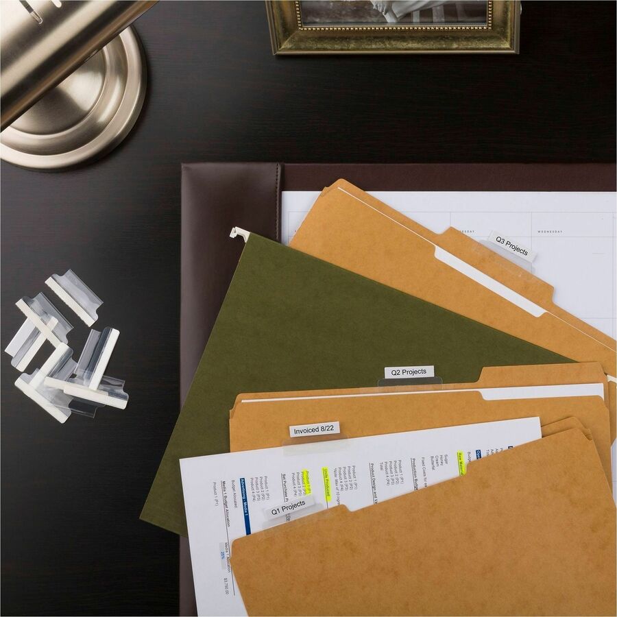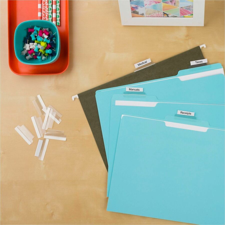 - Self-adhesive, precut plastic tabs offer 1/3" tab extension