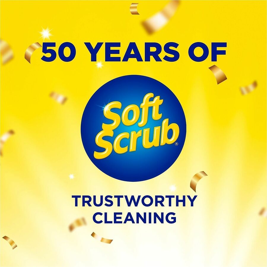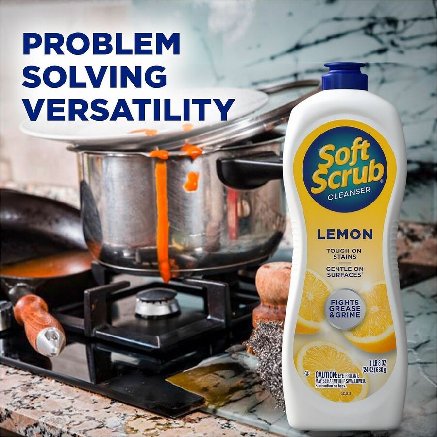 | Marketing Information | Commercial-grade Soft Scrub Lemon Cleanser is an abrasive cream cleanser. Soft Scrub is gentle on surfaces. It will not scratch. Simply squeeze cleaner directly onto kitchen or bathroom surfaces or onto damp sponge or nonabrasive applicators. Cleanser rinses cleaner than other surface cleaners. Soft Scrub is formulated to minimize work and residue, leaving surfaces smooth and polished. |